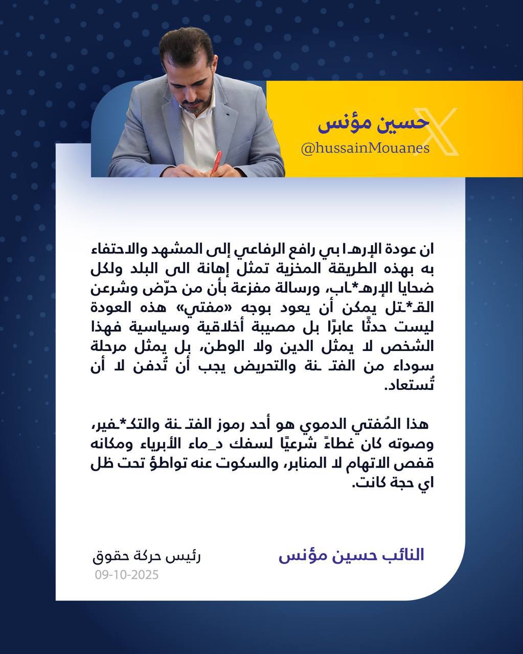 حركة حقوق عودة الإرهابي رافع الرفاعي إهانة للبلد