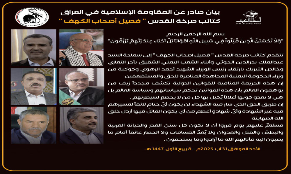 بيان تعزية صادر عن المقاومة العراقية كتائب صرخة القدس إلى ال ...