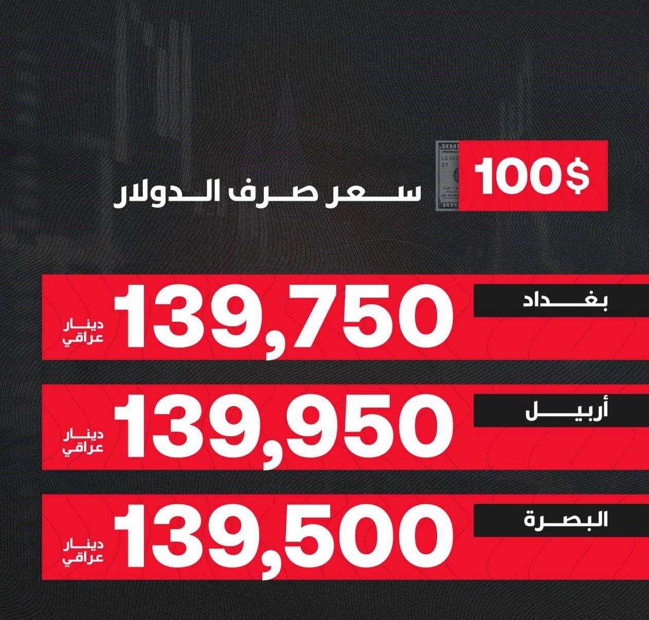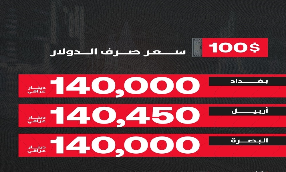 أسعار الصرف تفتتح على ارتفاع طفيف في بغداد: 140,500 دينار لك ...