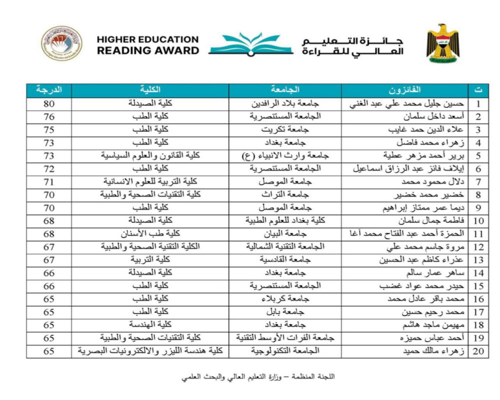 وزارة التعليم العالي تعلن نتائج جائزة القراءة 2025 بمشاركة أ ...