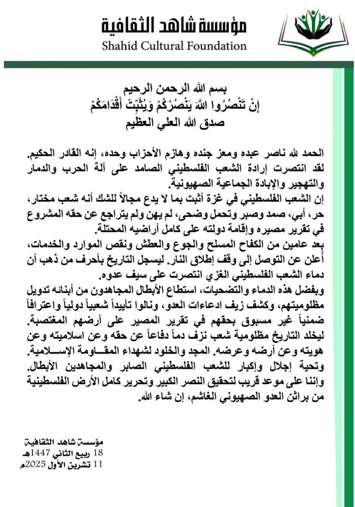 مؤسسة شاهد الثقافية"انتصار إرادة غزة وثبات الشعب الفلسطيني ...
