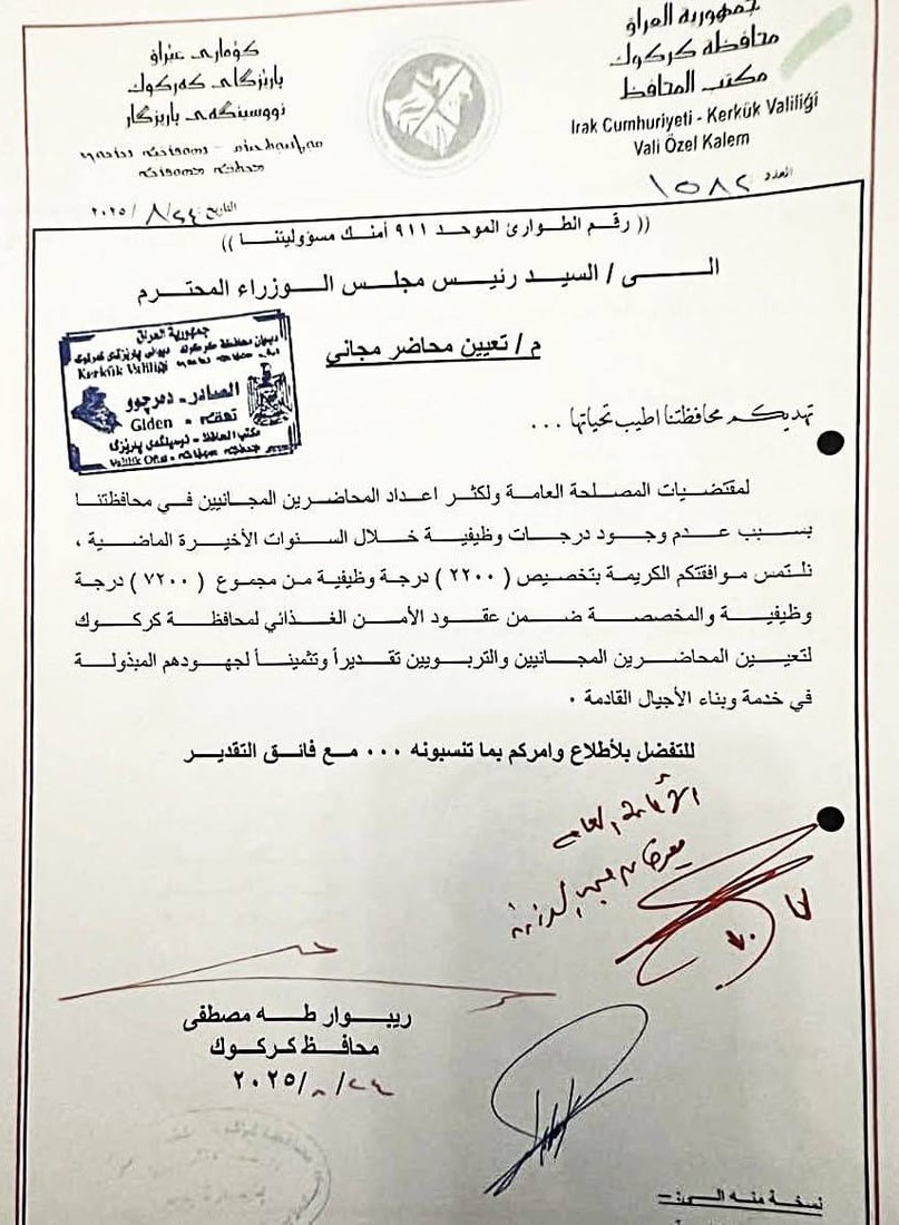 السوداني يرد على طلب محافظ كركوك بــ تعيين المحاضرين المجاني ...